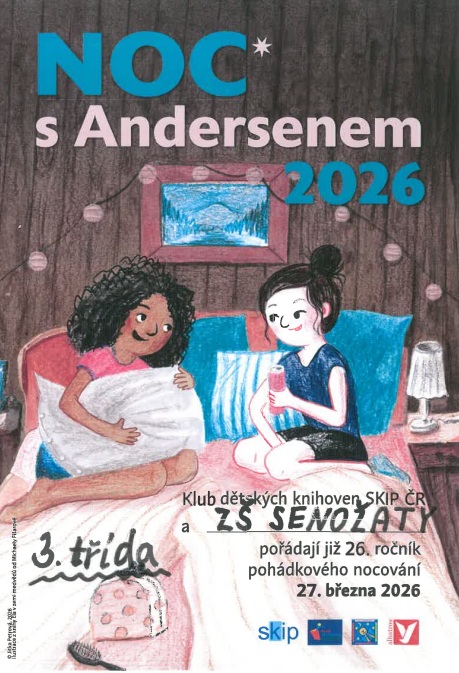Noc s Andersenem 17.3.2026 Vystavil: Tomáš Mocek Sdílet Sdílet Klikněte pro zkopírování URL Facebook Klub dětských knihoven SKIP ČR a ZŠ Senožaty pořádají již 26 ročník pohádkového nocování 27 března 2026 Přílohy noc-s-Andersenem-26.pdf PDF, 97.12 KB Stáhnout